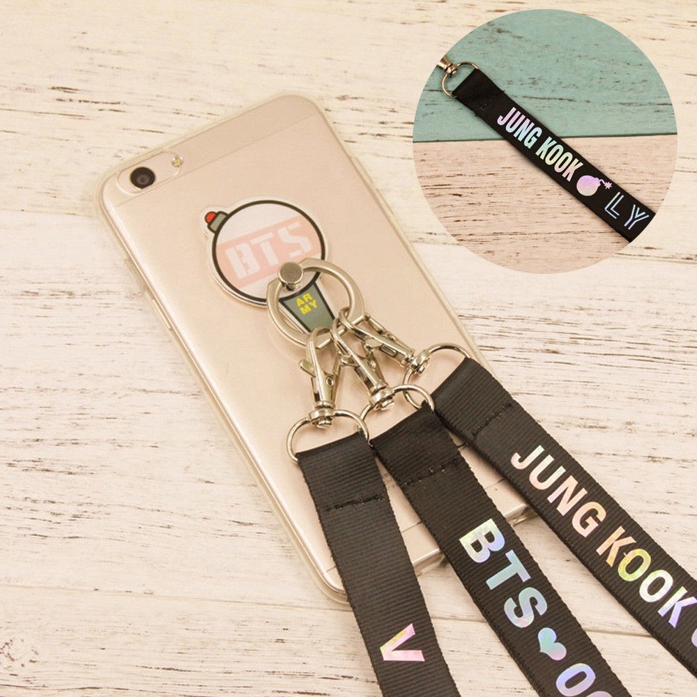 Kpop Bts Keychain Bangtan Boys Lanyard Pink Kawaii Phone Strap For