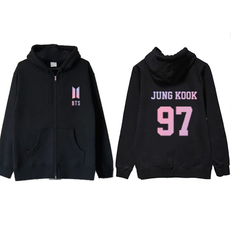 Jaket Bts Jungkook 97 Hoodie Zipper Hitam Shopee Indonesia