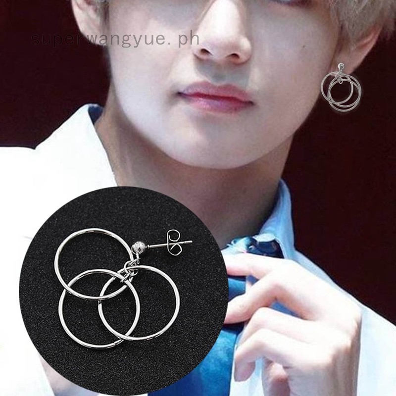 1 Pair Kpop Bts V Earrings Bangtan Boys V Stud Doulbe Ring Silver